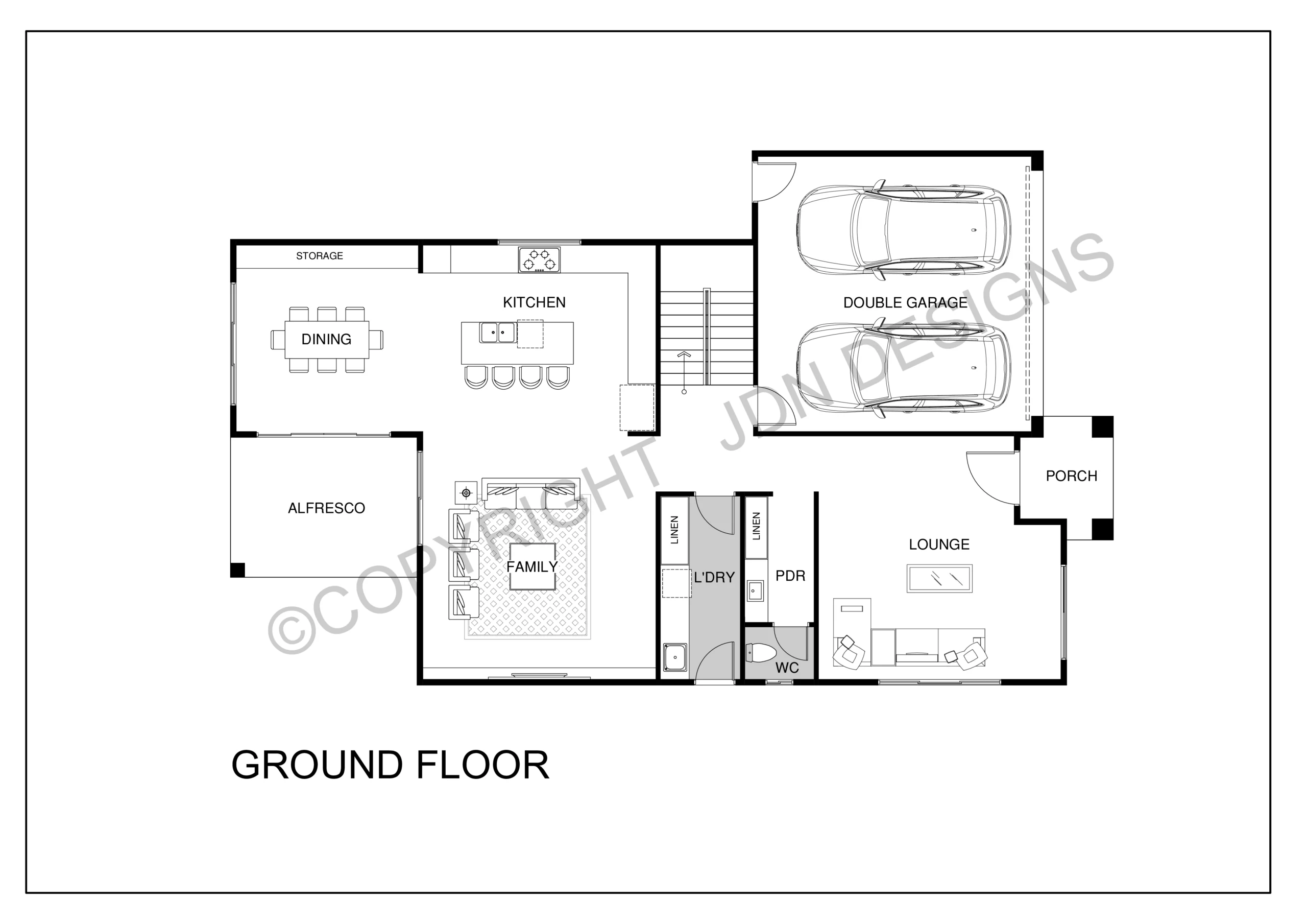 This box model double-storey house is designed with large windows to let in plenty of natural light during the day, making the house bright and welcoming. It includes three living rooms and three bedrooms and two bathrooms offering plenty of space for families to live comfortably. The double garage with large walkway is a modern feature that connects indoor and outdoor areas, creating a great flow and making the home feel open and airy. This design combines style and practical living, perfect for Aussie families looking for a modern, spacious home.