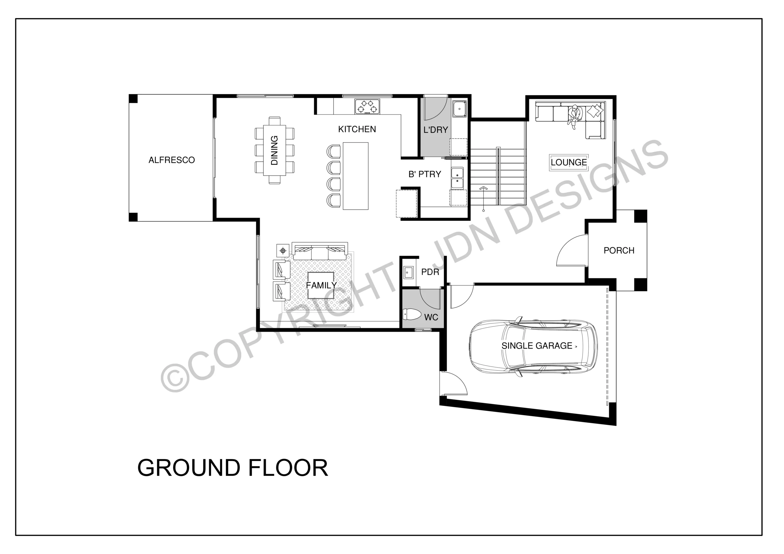 A home that has something for everyone; the ground floor includes a lounge, and spacious open plan living, kitchen and dining that effortlessly connects to the outdoor living. If you’re after a little luxury (and privacy), this design is the one; the first floor includes a large main bedroom with ensuite, walk-in robe and large lobby area, as well as three spacious bedrooms, and a main bathroom to keep the kids entertained.