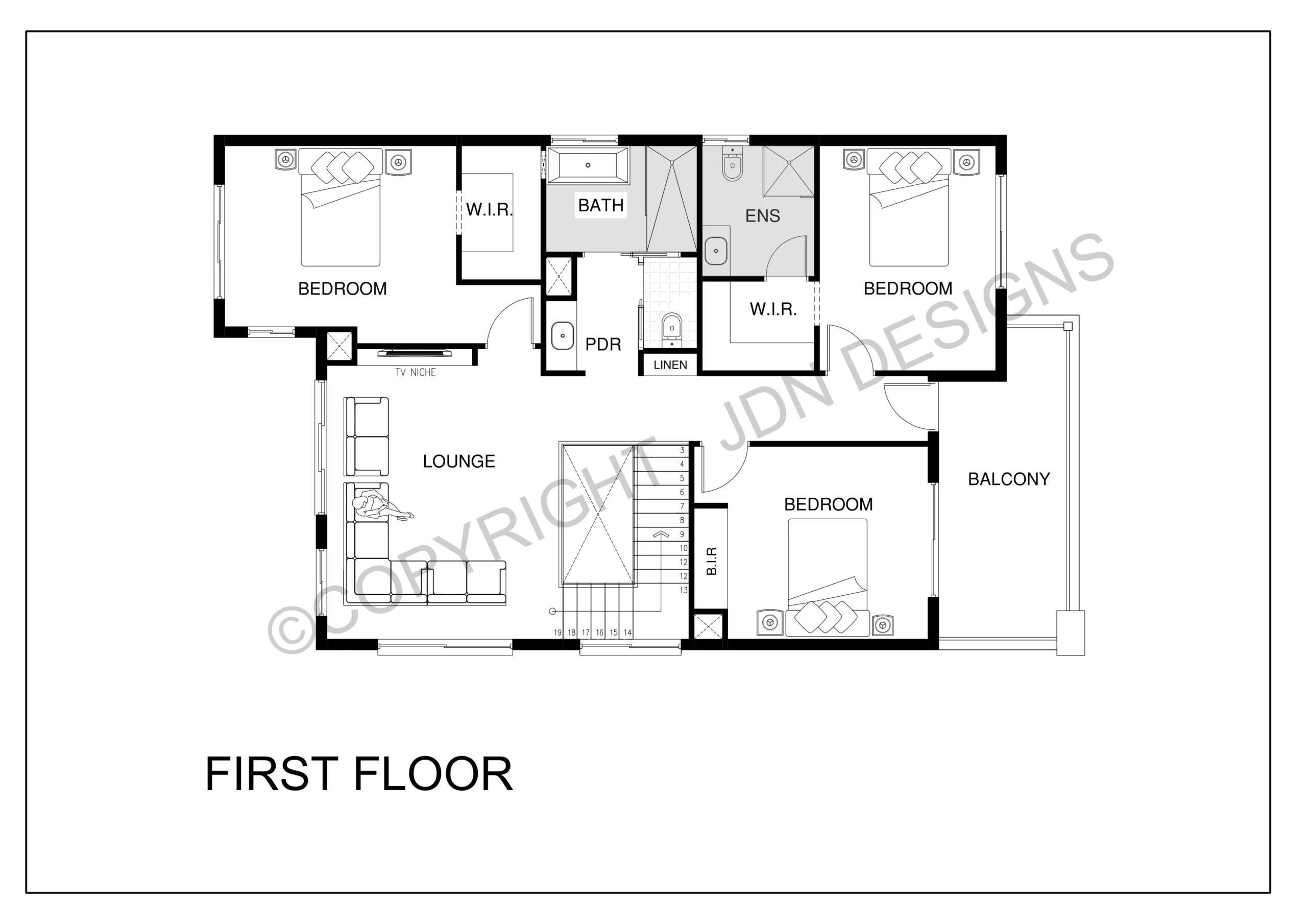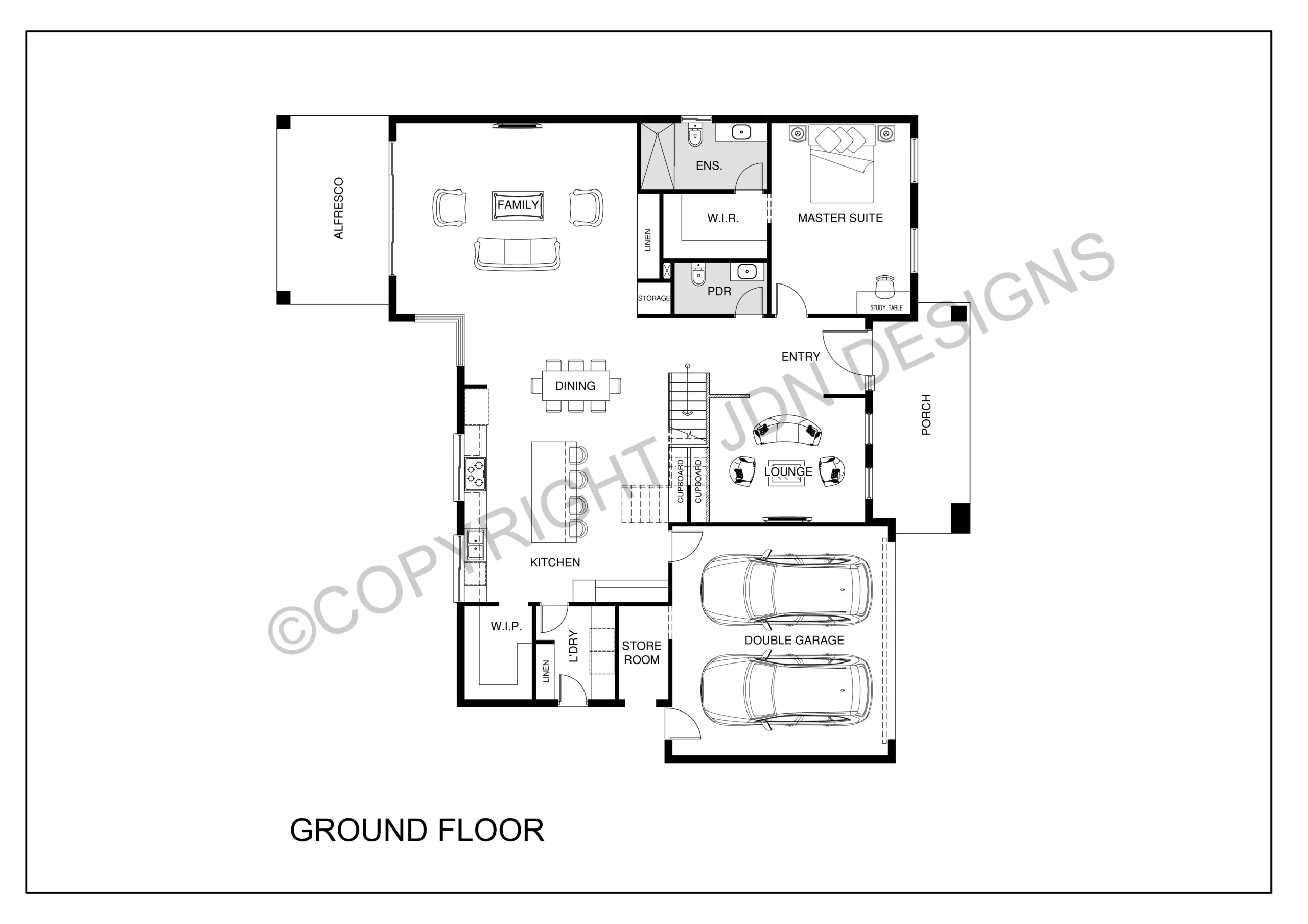 A large family home features an elegant up to date double-storey house style with clean lines, a balcony, and an attractive front entrance set among terraced landscaping. This double storey home is 616sqm of living, featuring: four bedrooms, three bathrooms, modern open plan kitchen, dining and living areas,